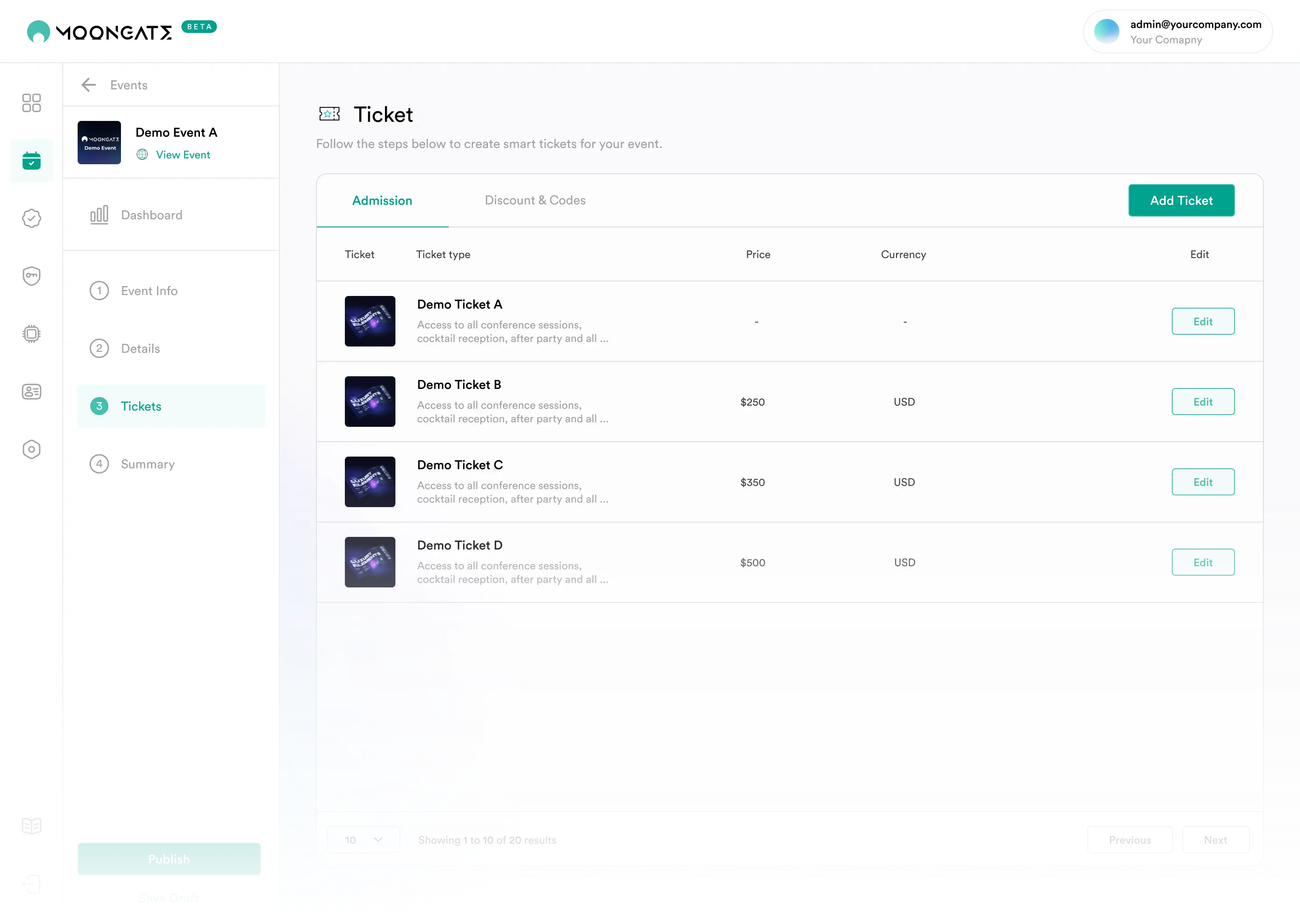 Create a memorable experience with on-chain tickets that enhances and records your customer’s journey across events
